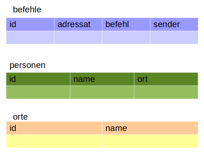 INSERT INTO befehle(adressat, befehl, sender) VALUES