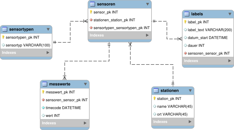 Um Tabellen zu erstellen, kann man SQL-CREATE-Statements verwenden. Der Folgende Code ist für sqlite optimiert.