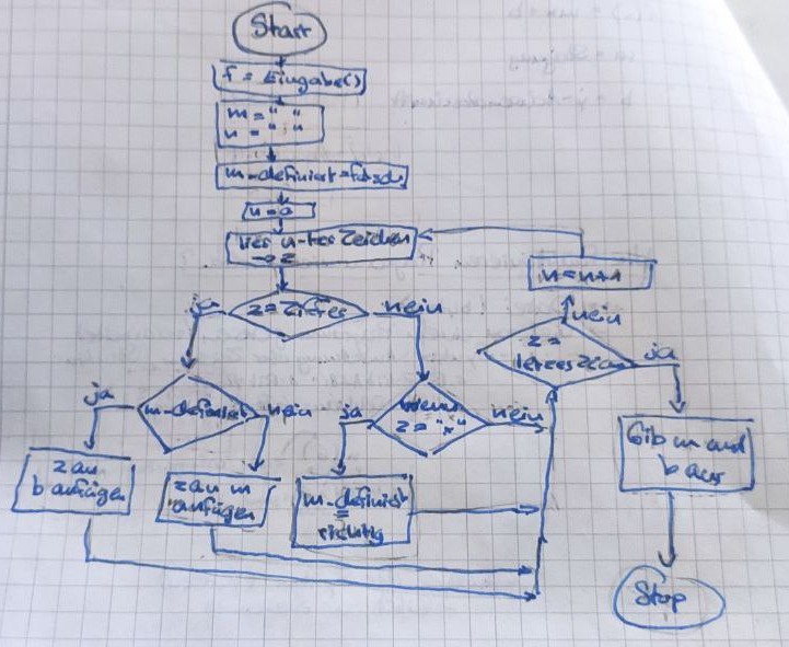 - Erstelle ein PAP, das zunächst nur die Struktur einer Eingabe verarbeitet und die Paramter m und n aus y = f(x) = mx+n in Variablen überführt.
