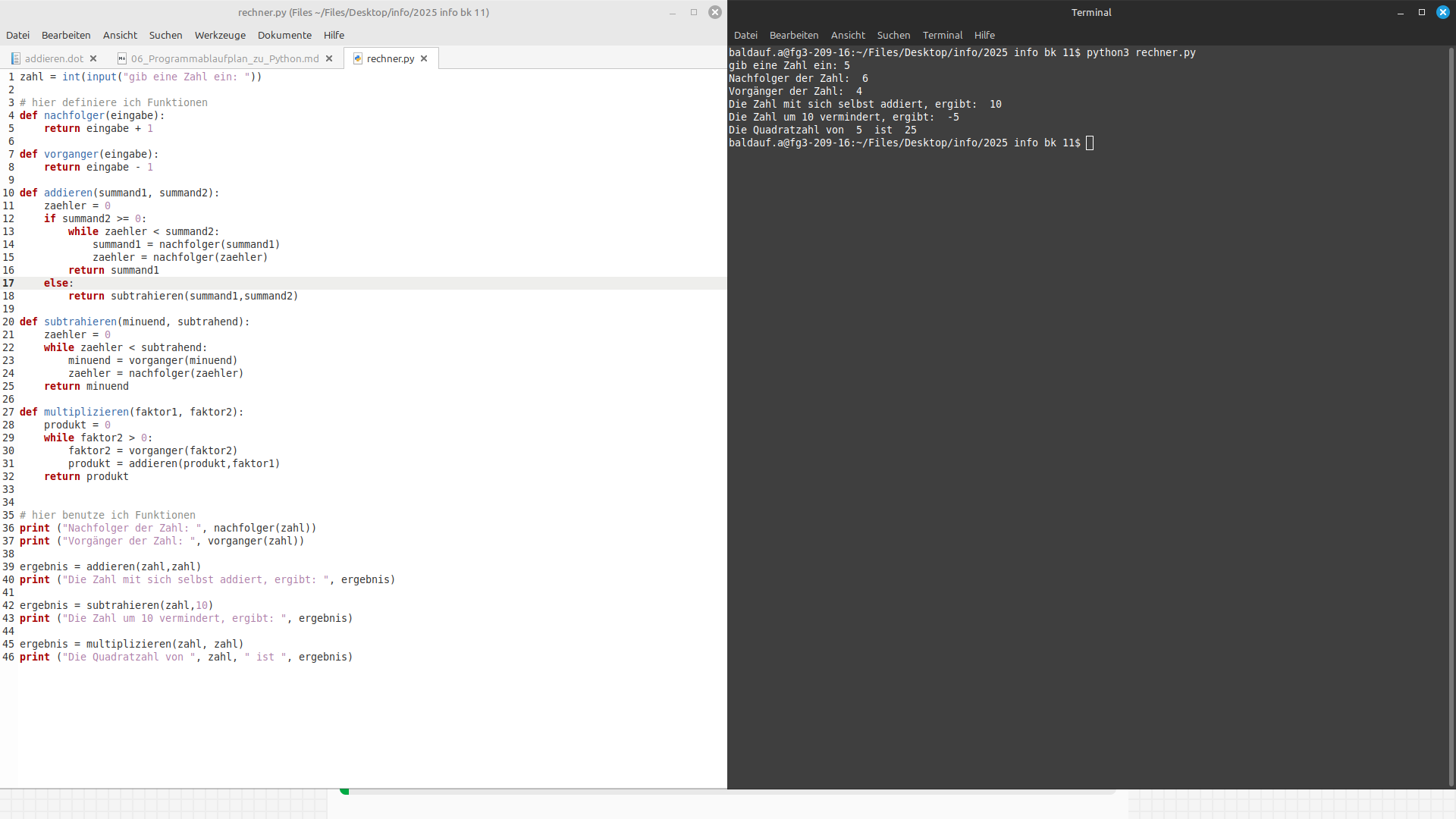 Erstellen Sie die Funktionen vorgaenger() und subtrahieren(minuend, subtrahend)