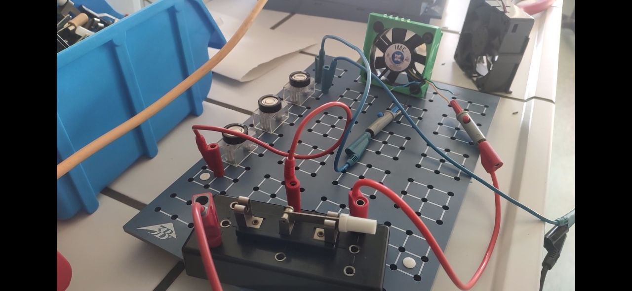 In beiden Durchführungen wurde der Kondensator ungefähr gleich lang geladen. Beim ersten mal drehte sich der Ventilator allerdings nur kurze Zeit. Beim zweiten mal drehte er sich deutlich länger. Jedes mal drehte sich der Ventilator zunächst schnell, dann immer langsamer.